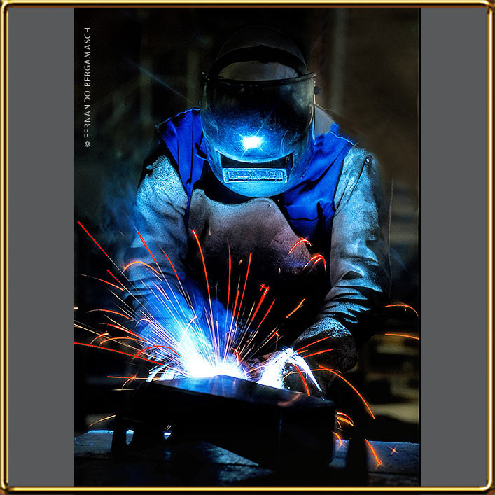 Industrial photo of electric welder with sparks