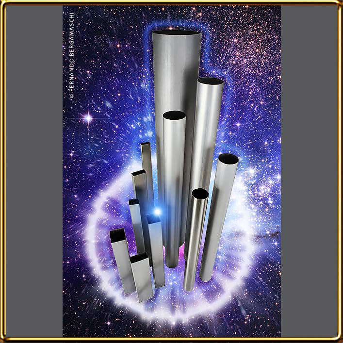 Photo-illustration with mechanical parts photo illustration of stainless steel tubes Iron tubes sci-fi photo illustration for Zamprogna. Inflatable boats photos of Angeviniere do Brasil